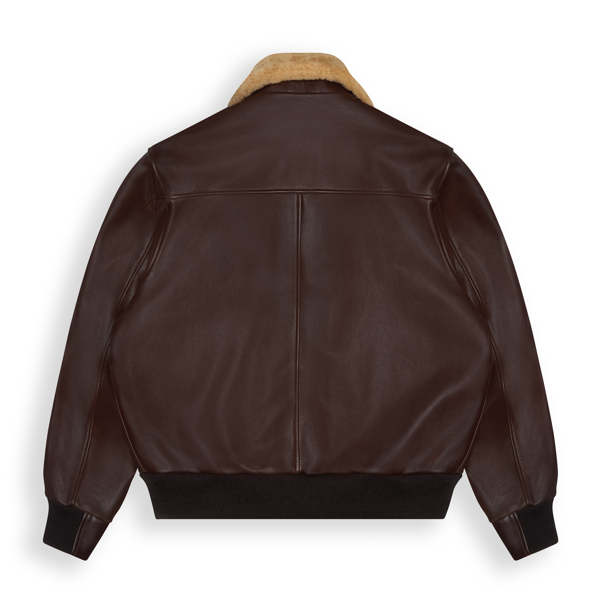 THE CARTER - Brown Leather Bomber Jacket Classic Fit